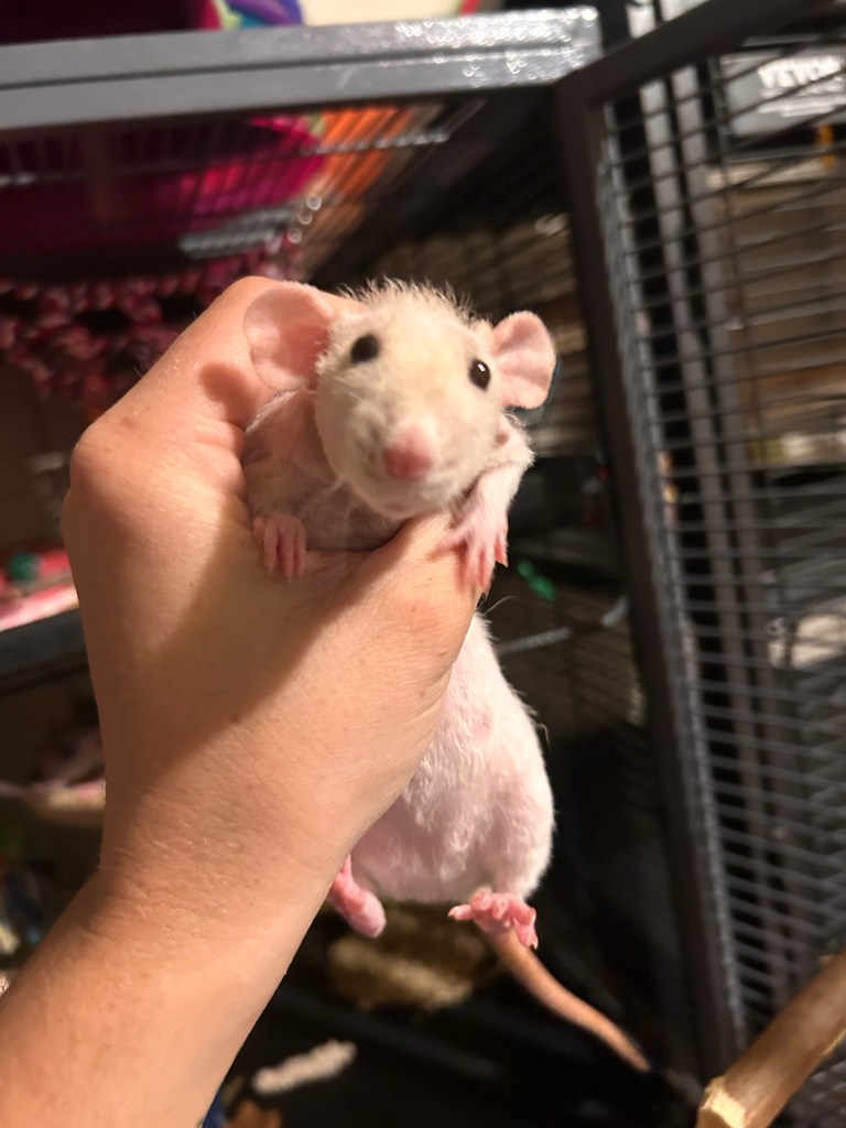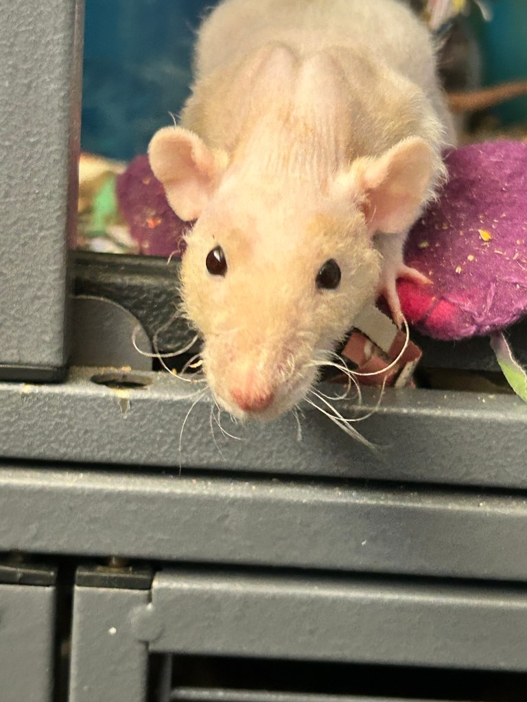 Pipsqueak will steal your heart in a minute. She is very good at reading emotions, responding with her own grooming tactics (including the occasional toe nibble).